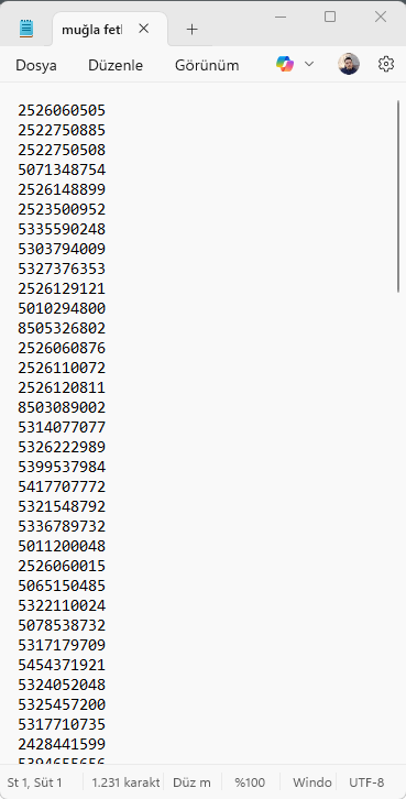 Tek tıkla .xlsx veya .txt olarak kaydet. Tüm alanlar düzenli sütun yapısında hazırlanır.